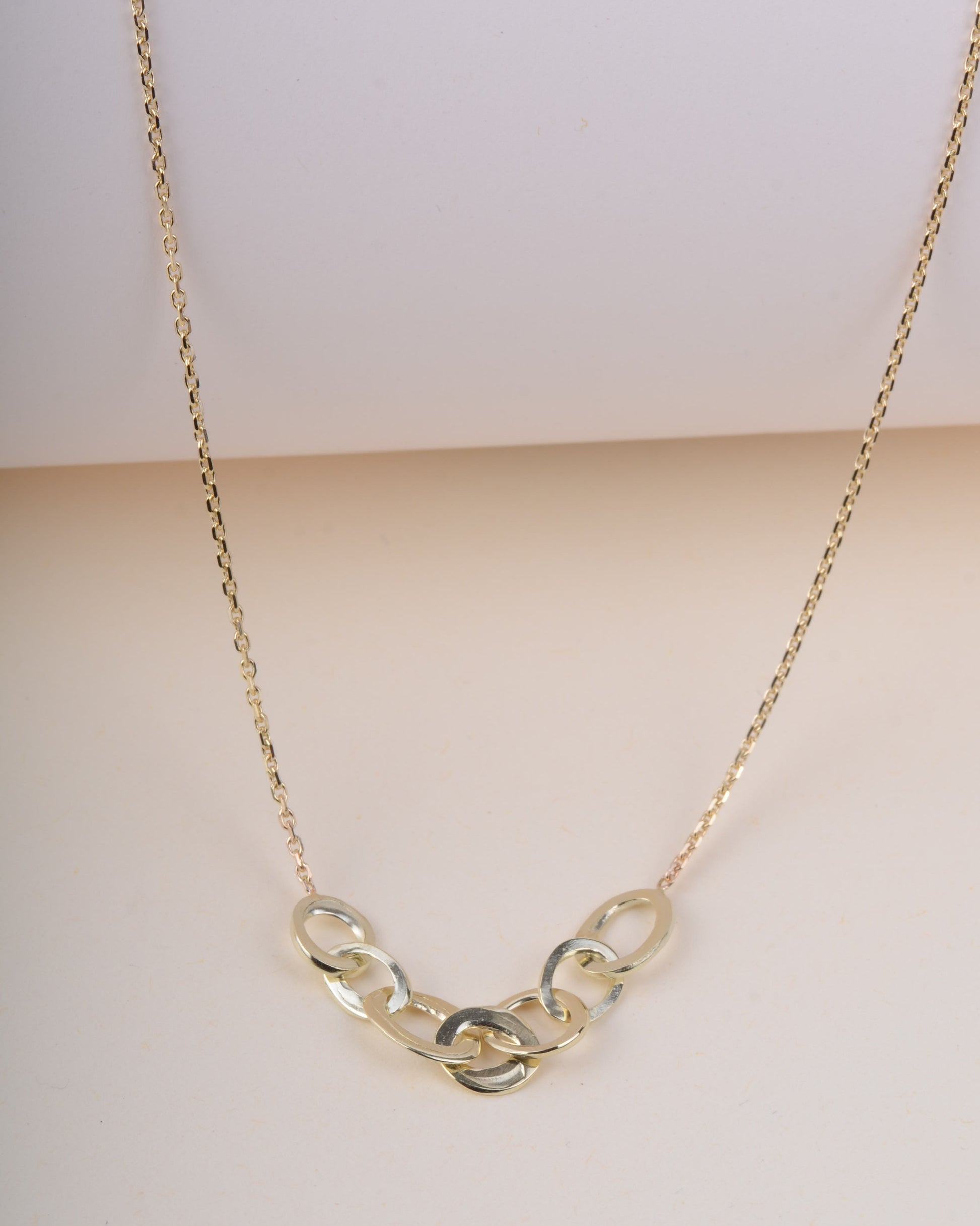 Handgemaakte, onregelmatige schakels maken deze ketting uniek. Aan een gefacetteerde ankerketting wordt het een prachtig geheel.