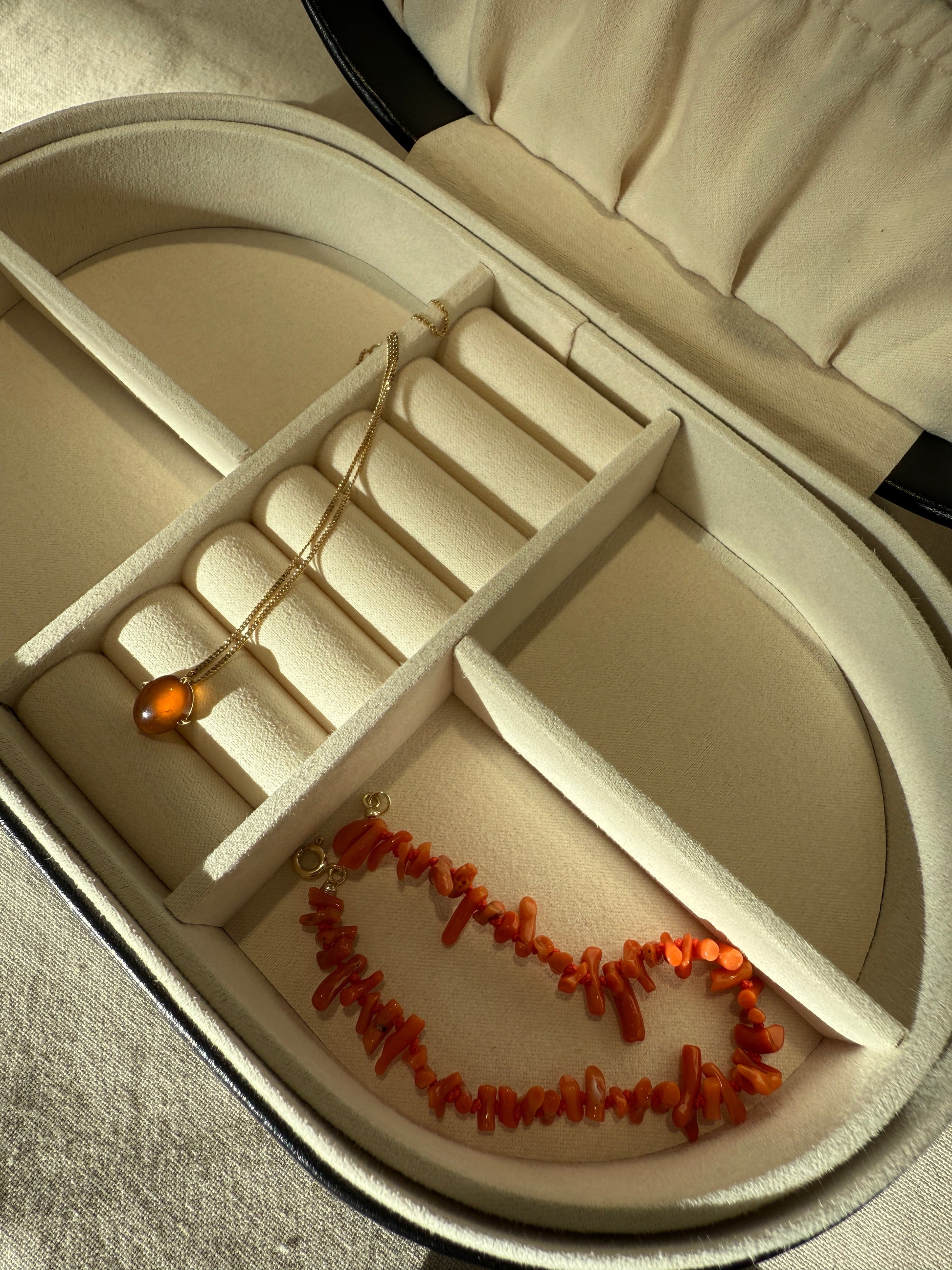 Luxe travel case om al je sieraden mee te nemen op reis. Met drie etagères is de case optimaal verdeeld om al je juwelen goed op te bergen.