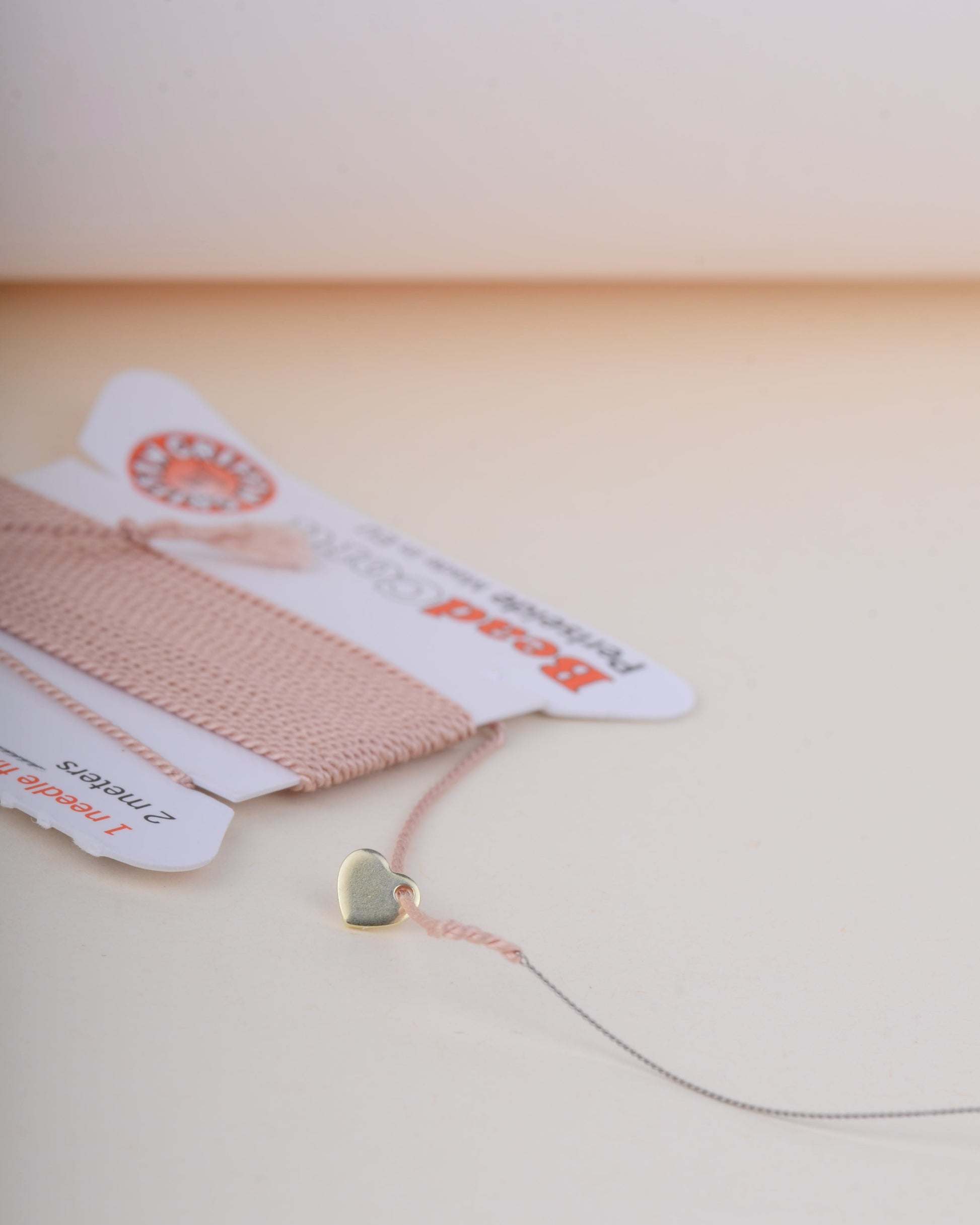 2. Aan de ene kant zit een naaldje, daarmee rijg je het hartje aan het zijde.
